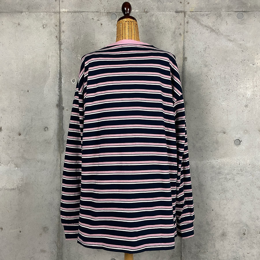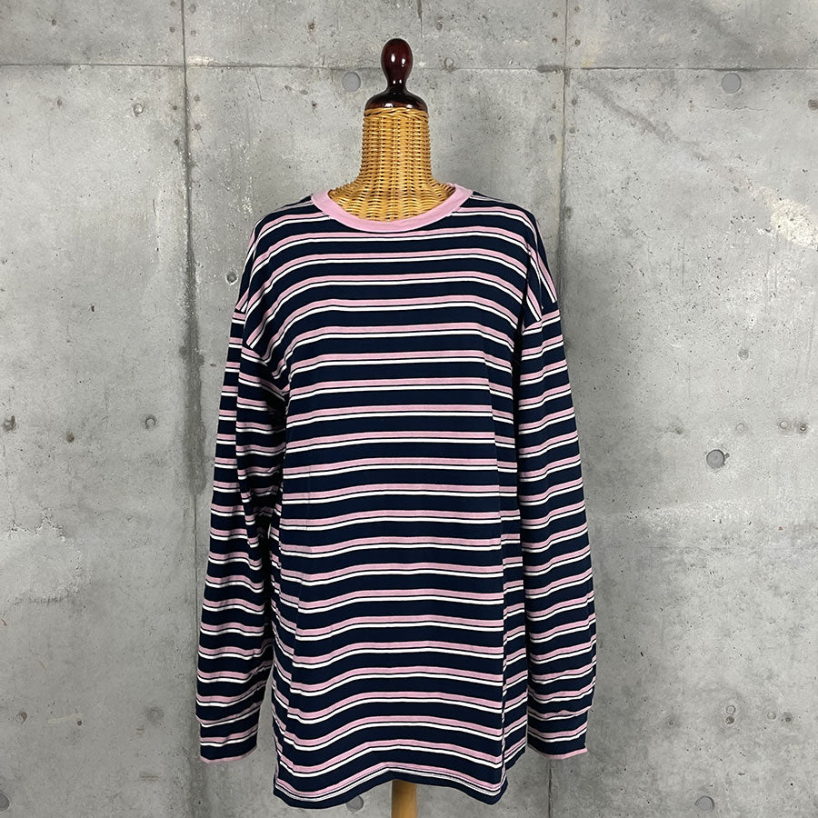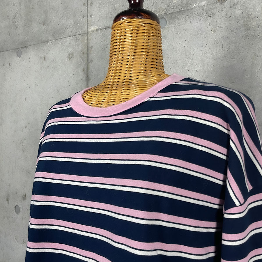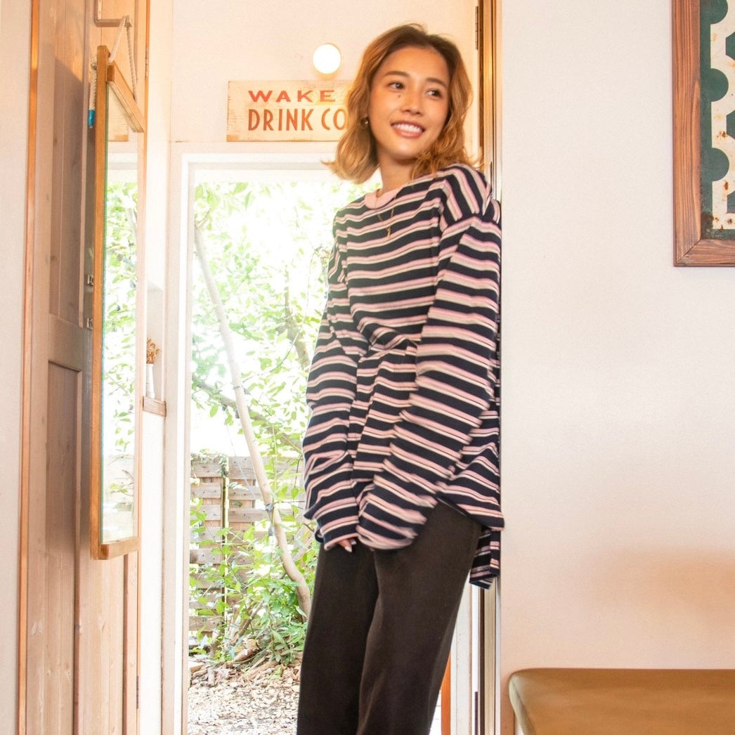 ゆったりとしたオーバーサイズシルエットのボーダートップス。