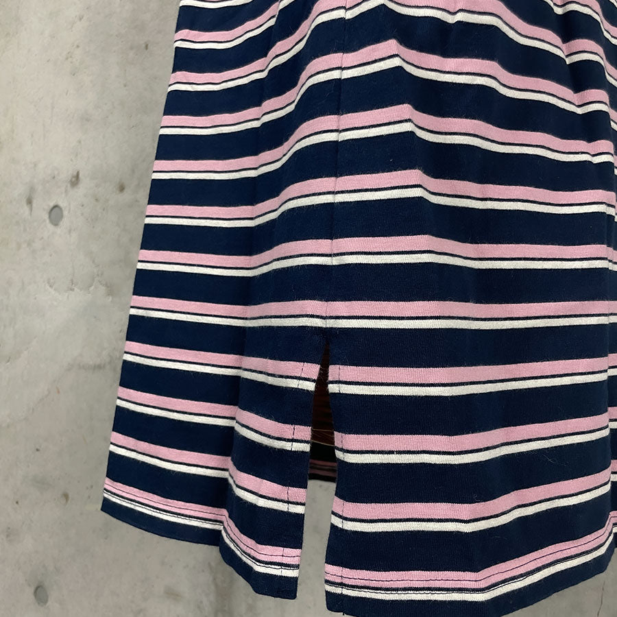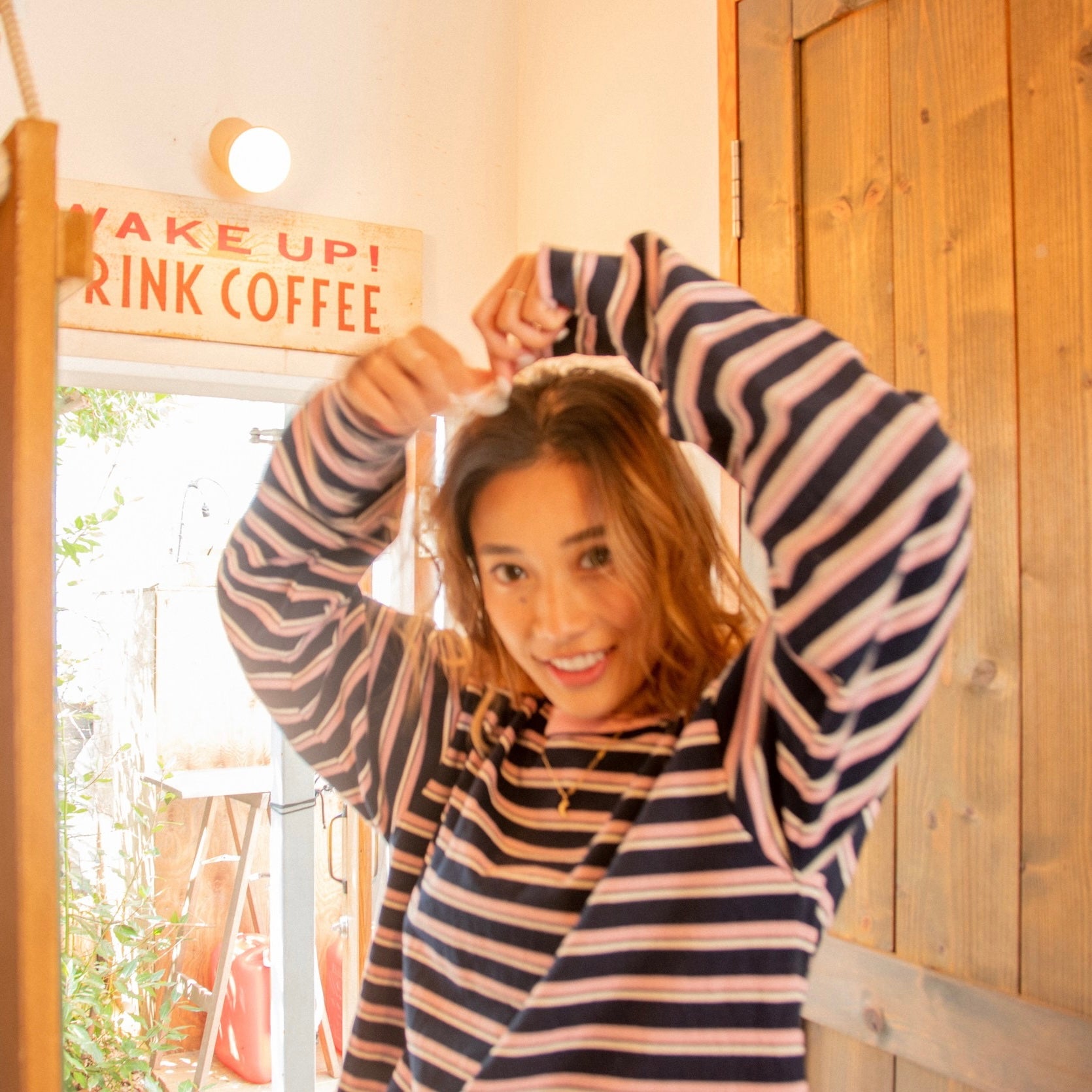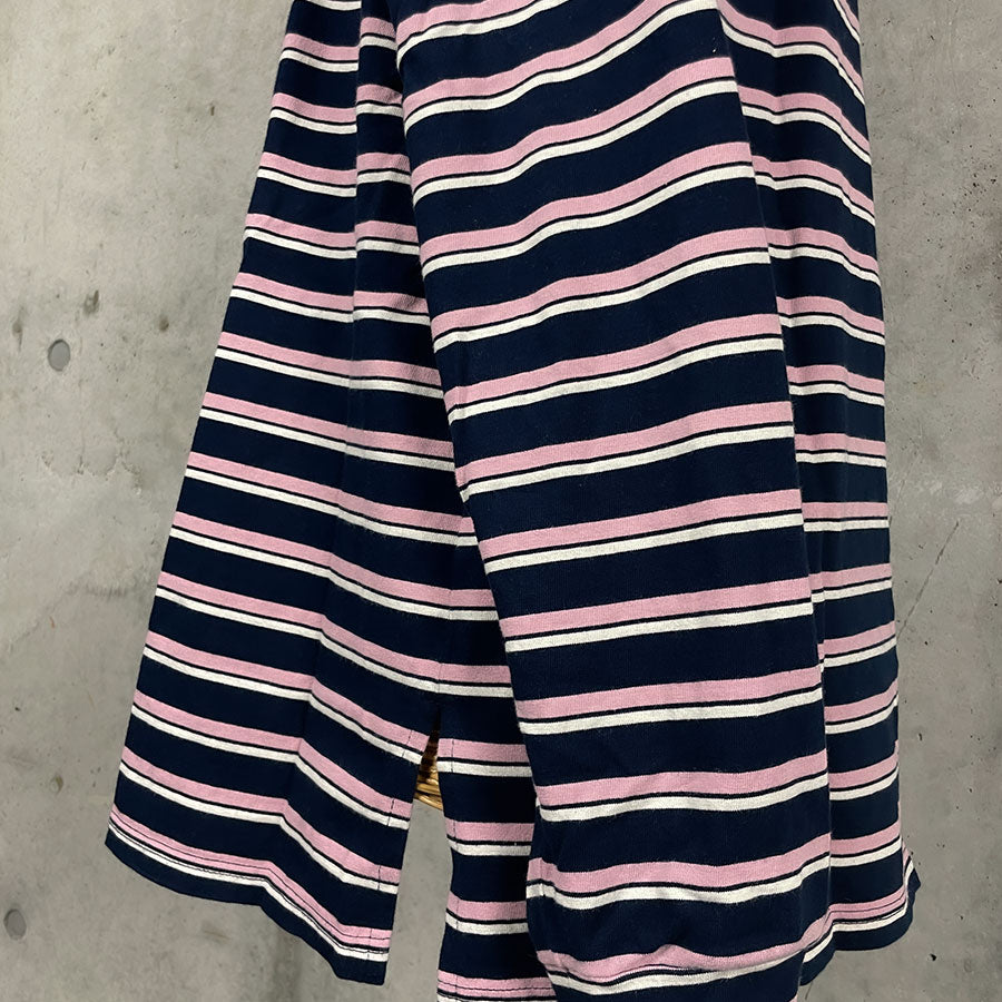 ゆったりとしたオーバーサイズシルエットのボーダートップス。