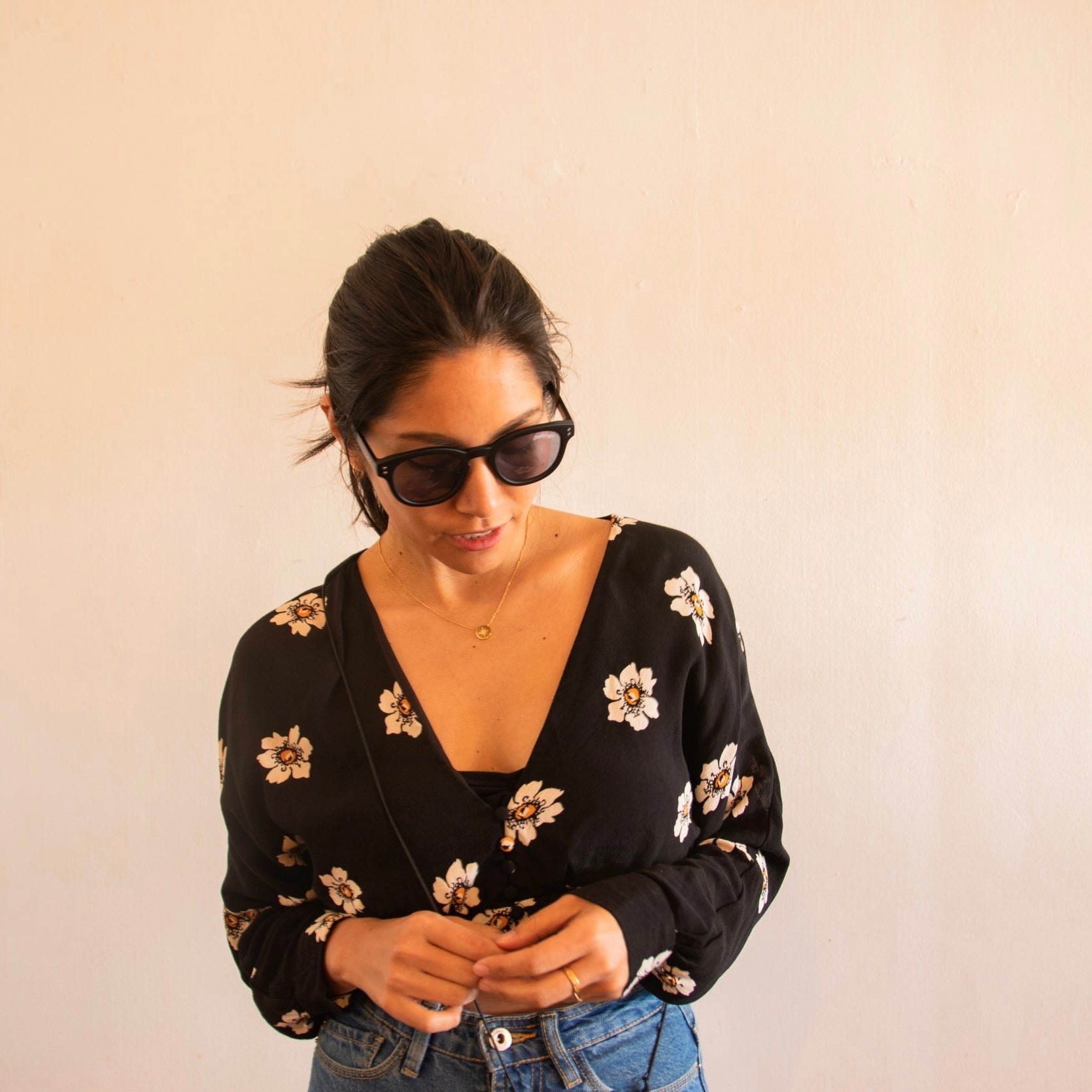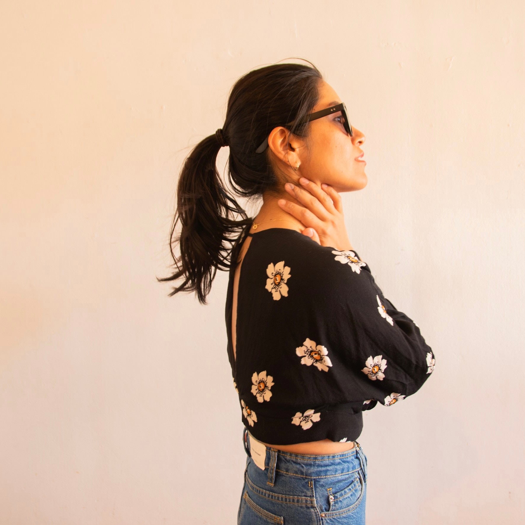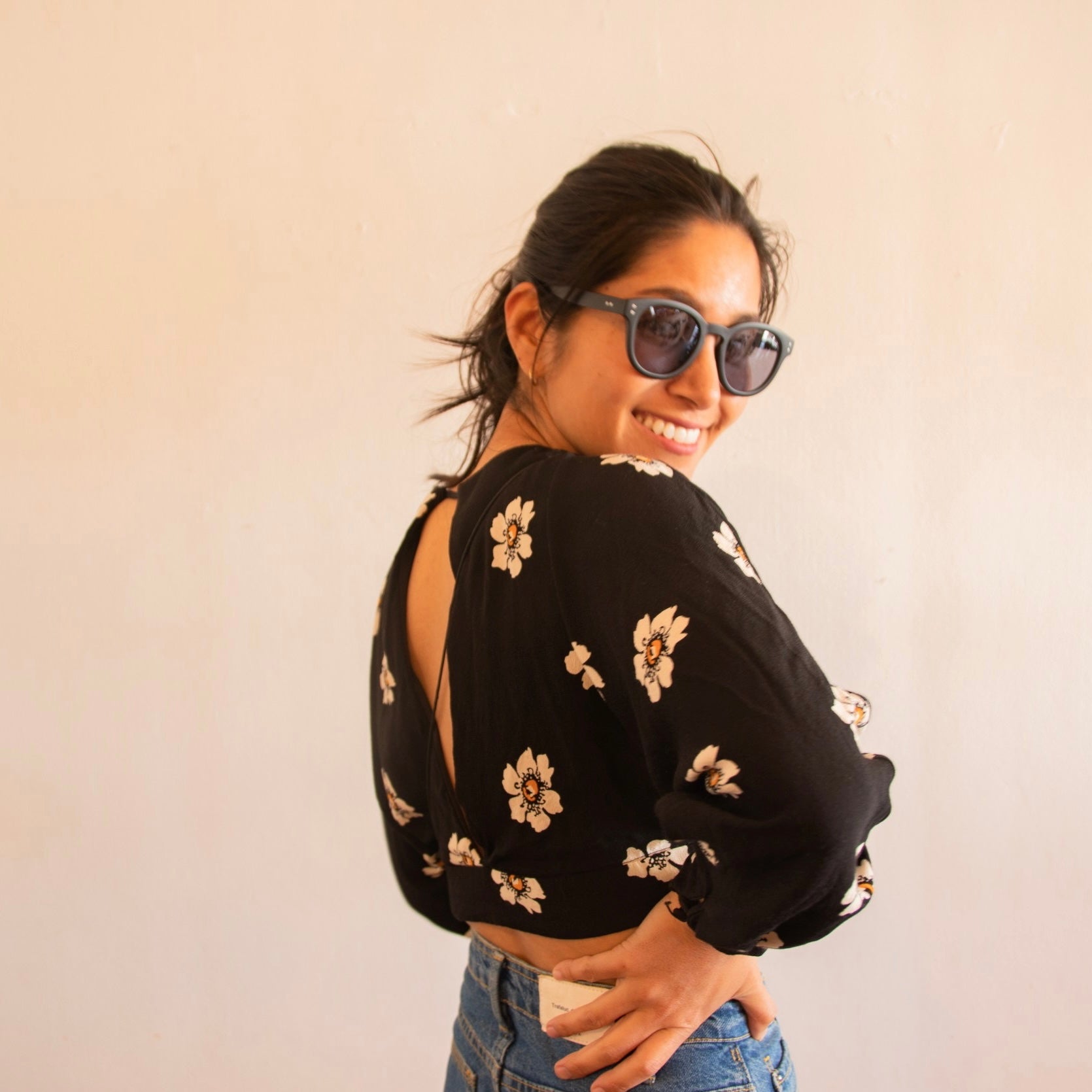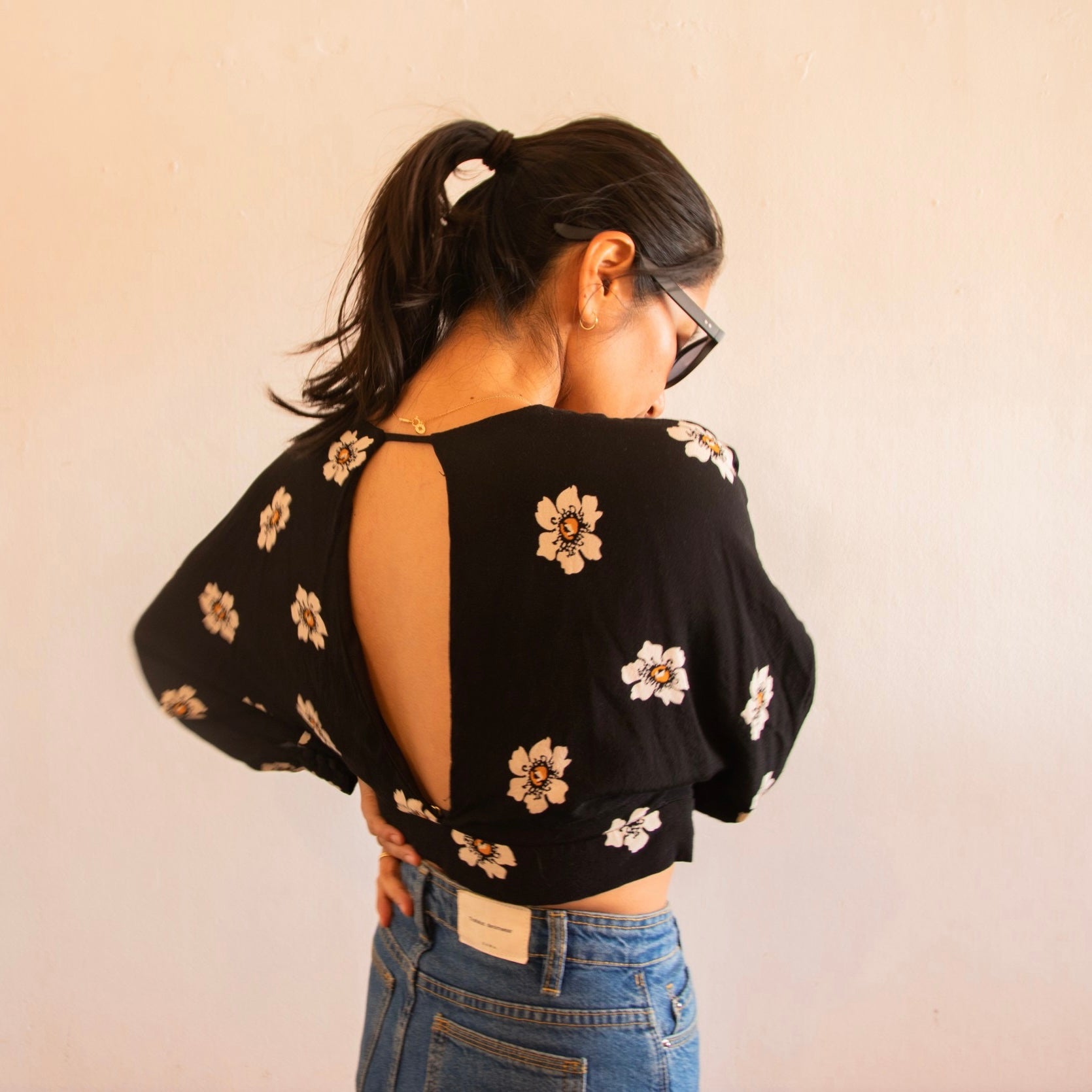 [清宮佑美] フラワープリント背中開きトップス